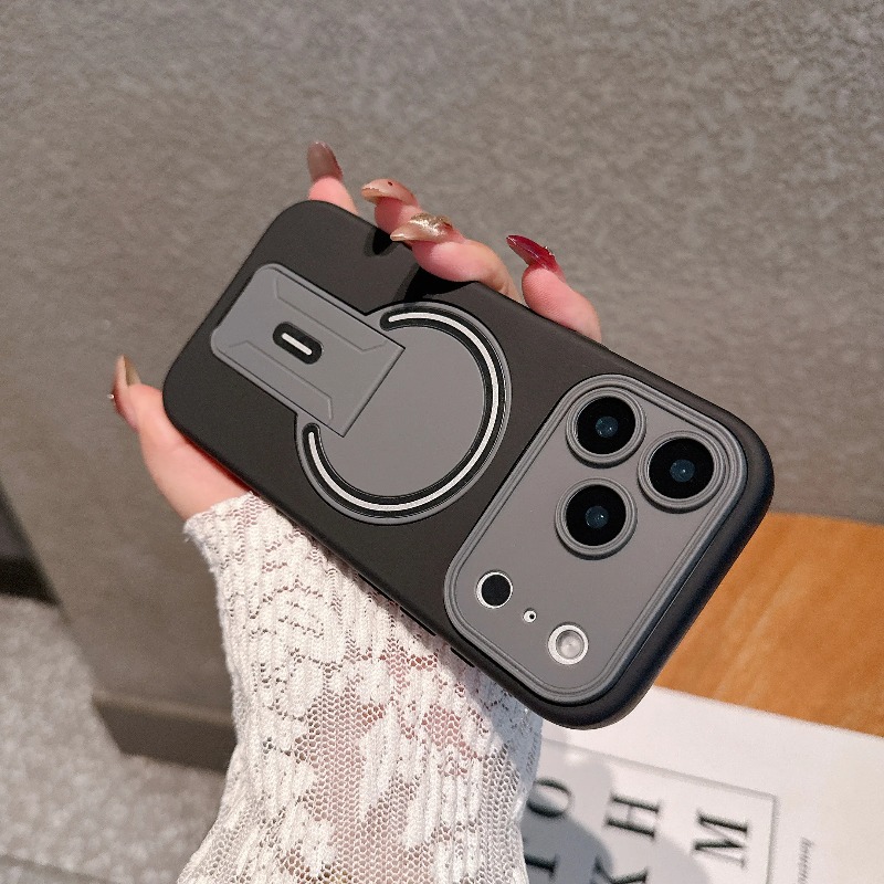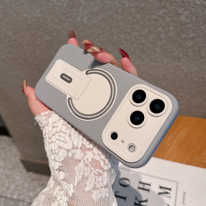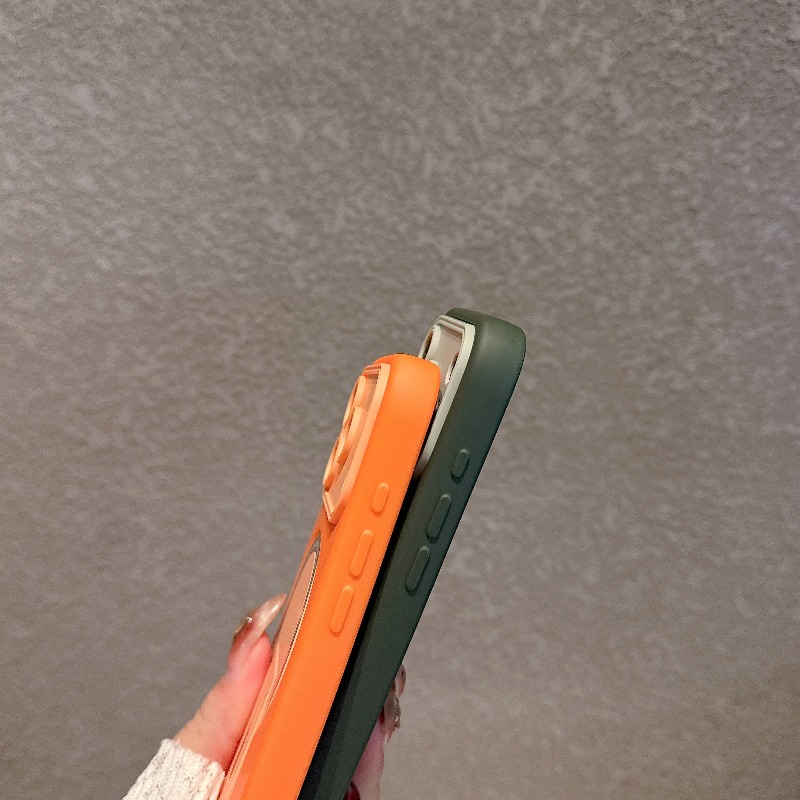 Sleek matte finish with a built-in foldable stand, designed for effortless hands-free use. Strong magnetic charging works perfectly, while the soft-touch bumper delivers full shockproof protection. Stylish color blocking elevates your iPhone’s look with luxury and practicality in one slim case.